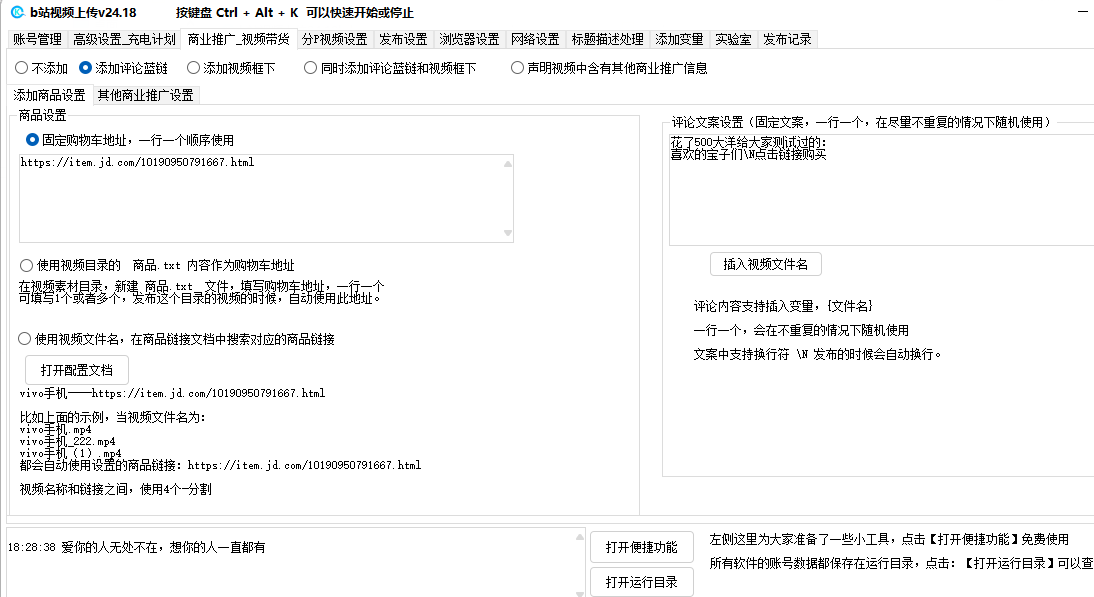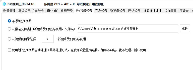 模拟人工上传,支持添加商品带货、支持充电计划、支持分P发布。